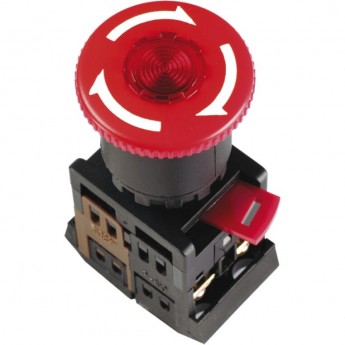 Кнопка управления IEK ANE-22 "Грибок"d=22мм 1з+1р неон/240В с фиксацией красная - BBG40-ANE-K04