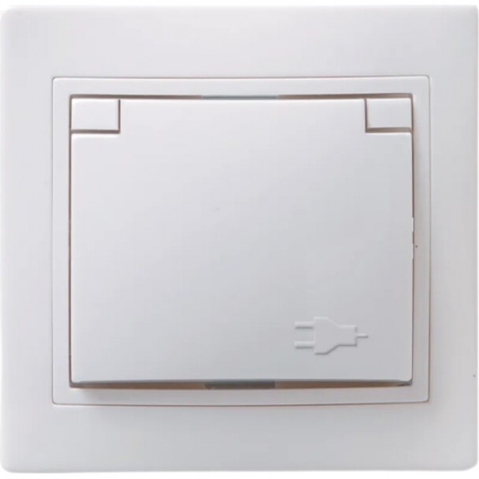 Розетка 1-местная РСбш10-3-КБ с заземляющим контактом с защитной шторкой с крышкой 16А IEK КВАРТА белый ERK12-K01-16-DM