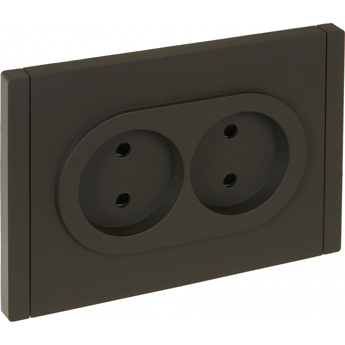 Розетка 2-местная IEK FORTEPIANO без заземления, с защитными шторками, безвинтовое крепление, 10А FP325 серый FP-R23-10-1-K03
