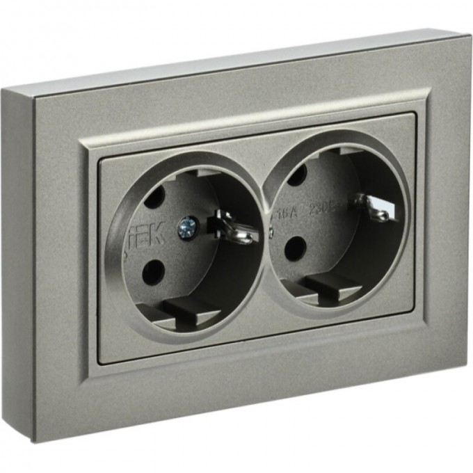 Розетка 2-местная с заземлением без защитных шторок IEK BRITE 16А в сборе РС12-3-БрШ шампань - BR-R21-16-K37-F
