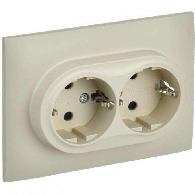 Розетка 2-постовая IEK SKANDY SK-R07B 16А с заземлением/защитные шторки, в сборе, бежевый SK-R24-16-K10-F