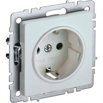 Розетка 2-местная с заземлением с защитными шторками IEK BRITE 16А в сборе РСш12-3-БрБ белый - BR-R24-16-K01-F